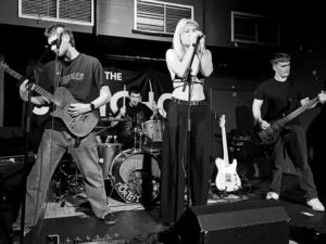 The lead singer began the set with a guitar slung over her shoulder, but it didn’t take long before she abandoned it in favour of roaming the stage. It was the right call. The moment her hands were free, her energy shifted and she owned the space! Pulling the crowd in with every movement. When she finally picked the guitar back up for the last song, it felt like a deliberate punctuation mark rather than a necessity. Twin Skeletons’ guitarist added some vocal support here and there, but the real weight of his contribution came from the guitar itself. He tore through riffs with a kind of reckless determination, playing as if every note might be the one that pushed them closer to a Bloodstock slot. They teased a new single dropping in four weeks, and while the details were kept light, the confidence with which they announced it suggested they know they’ve got something strong on the way. The crowd reaction didn’t hurt either. I do believe it was called “Useless” but I could be wrong. Twin Skeletons played like a band who understands their strengths: a magnetic frontwoman, tight musicianship, and a growing sense of identity. Their set felt polished without losing its edge, and the crowd fed off their energy from start to finish. A special shout-out has to go to their merch table, which looked noticeably lighter by the end of the night. Shifting that much merch at a local show is no small feat – it’s a sign of a band connecting with their audience beyond the stage, and of fans who want to take a piece of the night home with them.